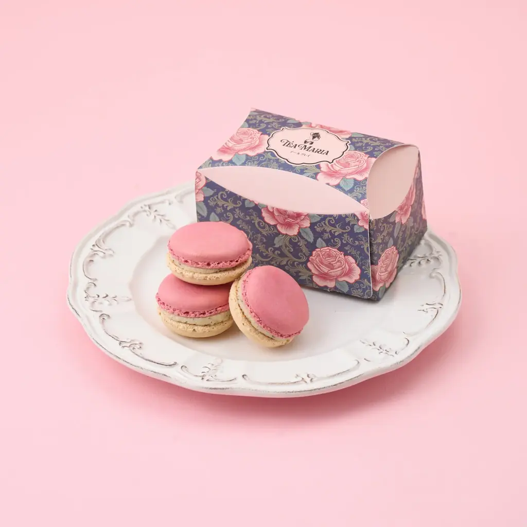 ティーマリアがこだわるマカロンはアールグレイ茶葉を使用し、口に入れた瞬間にふんわりと紅茶の香りが立ち上がる設計です。外側のシェルは軽やかに仕上げ、内側のガナッシュクリームで味の余韻を長く保ちます。
