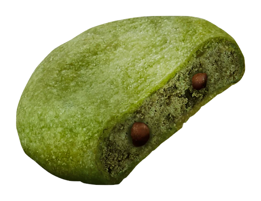お濃い抹茶は、鹿児島県産の抹茶を生地に練り込み、チョコチップを合わせて焼き上げた商品です。甘みと渋みのバランスを重視し、濃厚でコクのある風味を目指しています。茶師十段の池田研太氏が監修しており、創業78年の老舗茶商「池田製茶」の抹茶を使用している点が特長です。