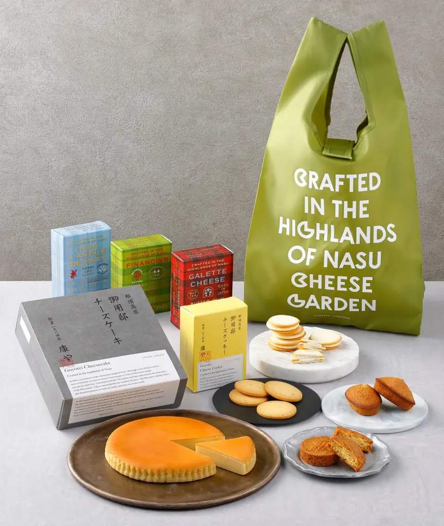 - セット内容:御用邸チーズケーキ1箱/御用邸チーズクッキー(4枚入)1箱/フィナンシェ(2個入)1箱/ガレットチーズ(2枚入)1箱/チーズラングドシャ(5枚入)1箱