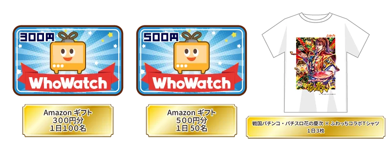 | 配信者向け特典 | ランキング入賞者に「花の慶次 × ふわっち」オリジナルコラボグッズをプレゼント(順位ごとの内容はイベントページ参照、内容は変更の場合あり) |