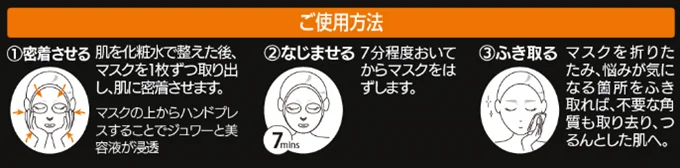 使用方法は夜の集中ケアとして位置づけられており、マスクのふき取りなどの方法に関する注意表示や推奨の使用手順も製品パッケージやブランドサイトで案内される想定です(※6)。