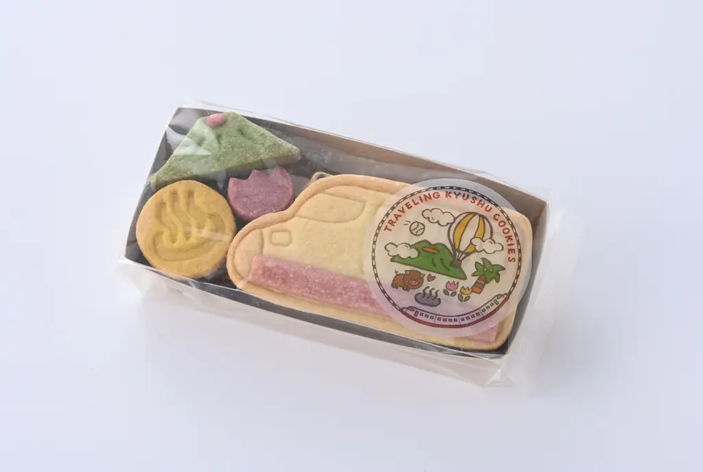 | 旅する九州クッキーアソート | 1,100円(税抜) / 税込1,188円 | 長崎:チューリップ、熊本:阿蘇山、大分:温泉、列車、その他合計3種類のクッキー入り |