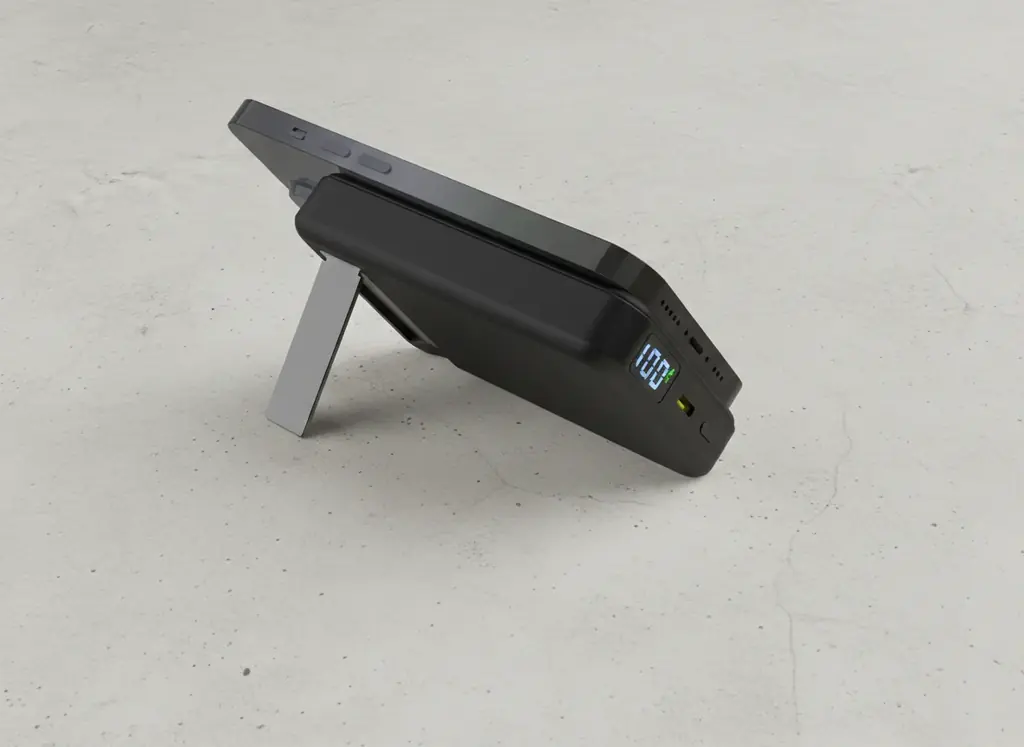 日常利用での取り回しを考えたコンパクト設計(W69×D19×H109mm、約220g)や、約2000回の充放電に耐えるとされる長寿命設計、残量を確認できるデジタル表示、スマホスタンド機能など、細かい使い勝手向上機能も搭載されています。
