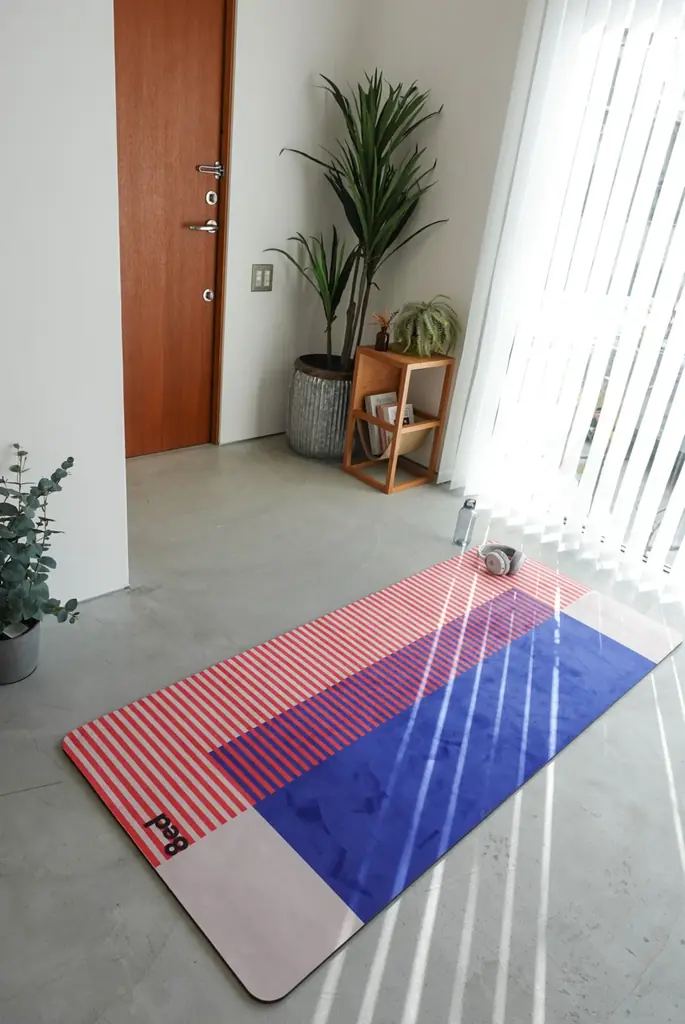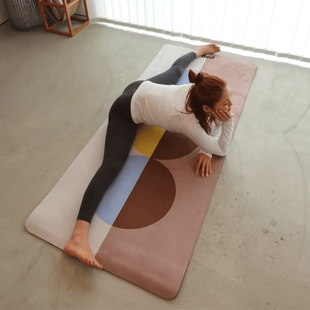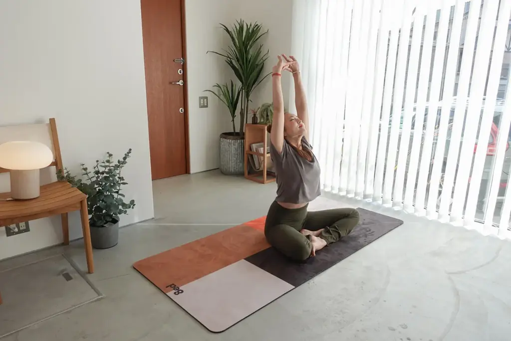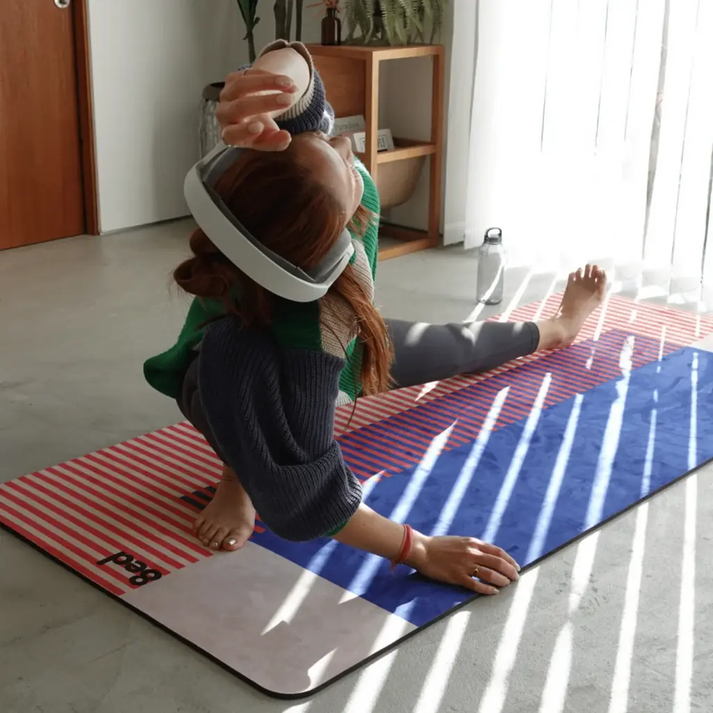 8ed Studioのストレッチマットは「運動のための道具」ではなく、暮らしの中に自然と存在するセルフケアアイテムとして設計されています。敷いたままでもインテリアとして違和感のないデザイン性を重視しており、ラグ感覚での使用も想定されたプロダクトです。
