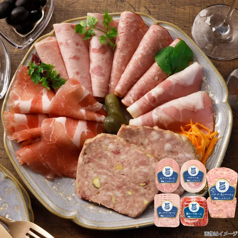 - セット内容:パテ・ド・カンパーニュ70g、ベリーハム72g、ビアソーセージ90g、ポークソーセージ90g、肩ロース生ハム50g