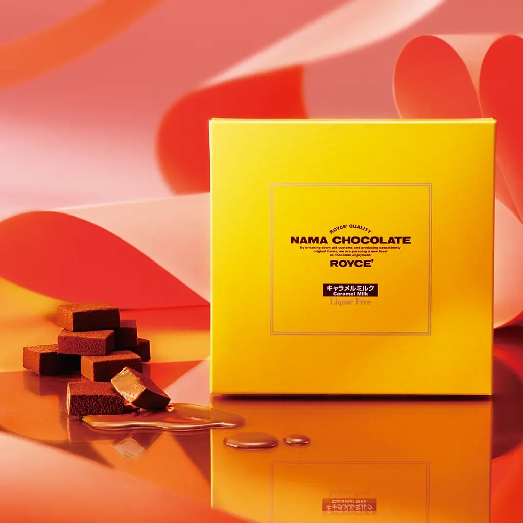 生チョコレート[キャラメルミルク]は、キャラメルの甘さと香ばしさがミルクのコクとまろやかに溶け合うお酒不使用の生チョコレートです。ココアパウダーで風味を引き締め、子どもから大人まで楽しめる味わいを目指しています。
