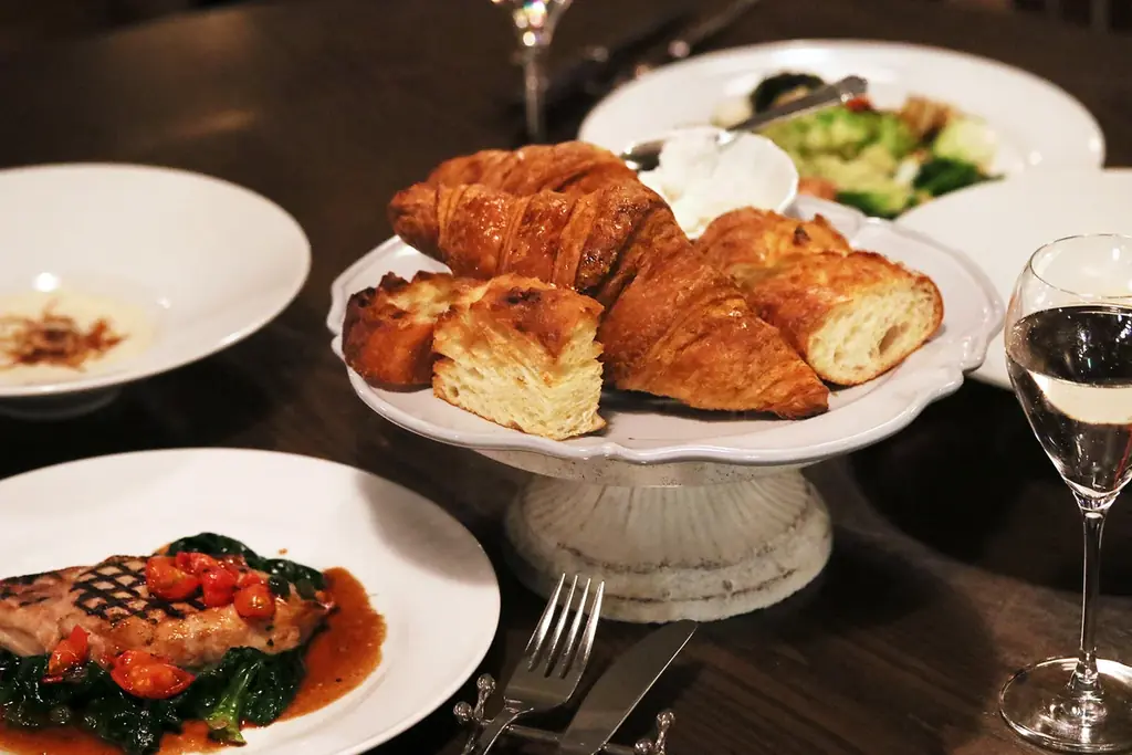 新メニューは「クロワッサン・バゲット・フォカッチャの盛り合わせ」+「季節のポタージュ」+「選べるメインディッシュ」で構成されます。パンは店内で焼き上げ、料理との相性を考えたラインナップとして提供されます。