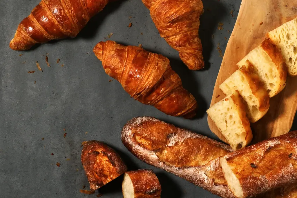 - 焼き立てパンの盛り合わせ(クロワッサン、バゲット、フォカッチャ)