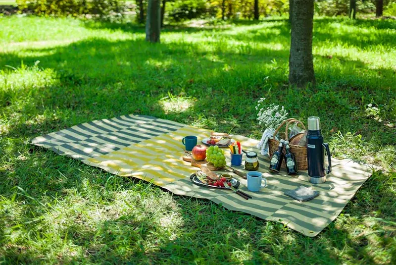 ピクニックラグは耐水性をもつためピクニックやビーチ、屋外イベントなどでの使用に適しています。加えて伸縮性と強度により、折りたたみや持ち運びの際の扱いやすさにも配慮されています。