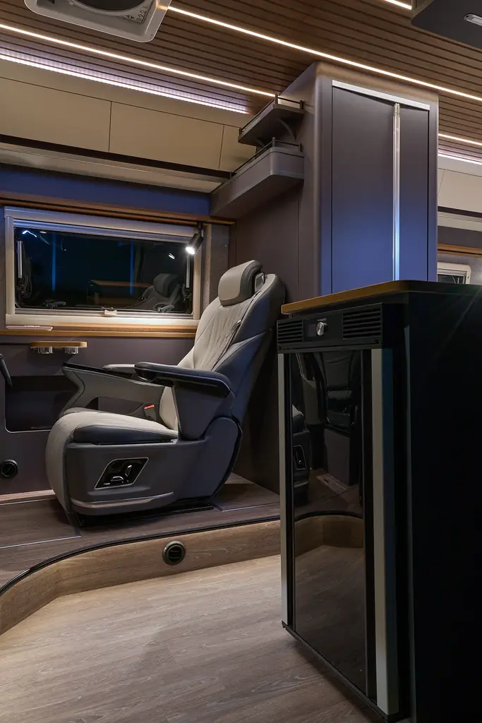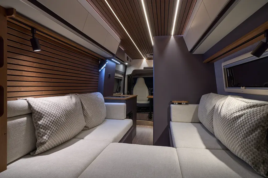 - セカンドシート背後のマルチルーム:トイレ、収納、着替えスペースなどを備える多目的空間として設置。車内の動線やプライバシー性にも配慮した設計です。