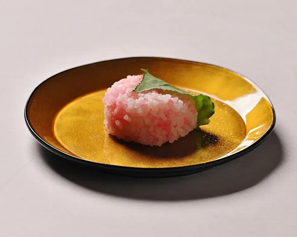 - 桜餅とお抹茶。後藤料理長のオリジナルレシピによる桜餅を含みます。