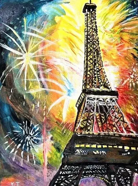 作品は美食とユーモアが共存するモチーフを多く含みます。苺のミルフィーユやスイーツ、愛らしい動物たちを通じて、画面に温かいタッチと鮮やかな色彩が表現されています。伝説的な社交場であるマキシム・ド・パリでの経験が、作品の細部や題材選びに影響を与えています。