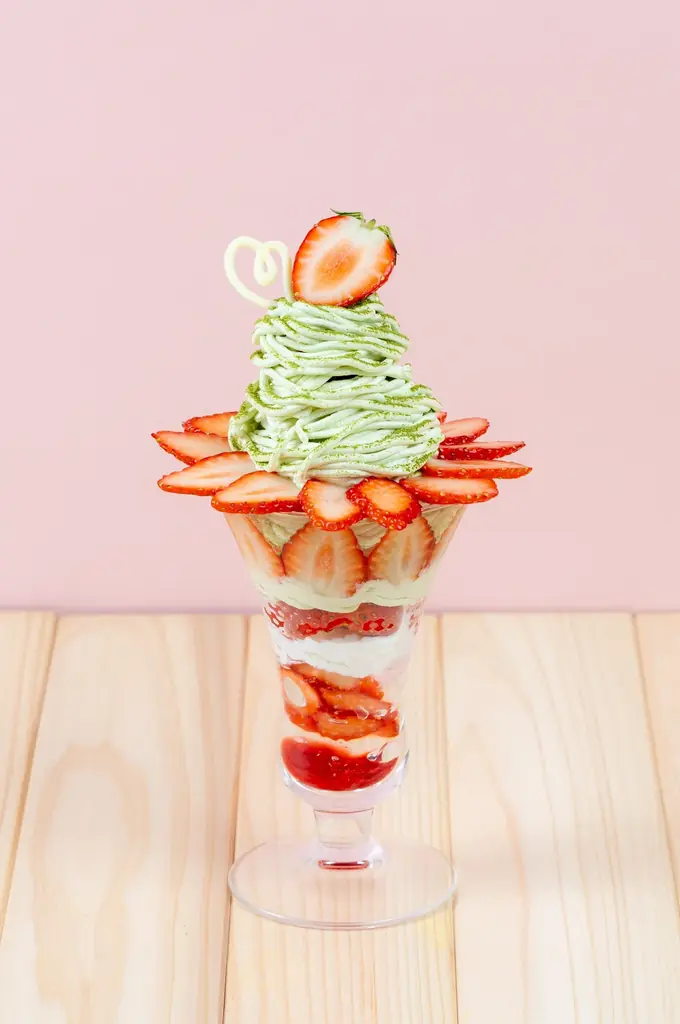 抹茶のほろ苦さといちごの華やかさが織りなす、春の限定パフェ登場