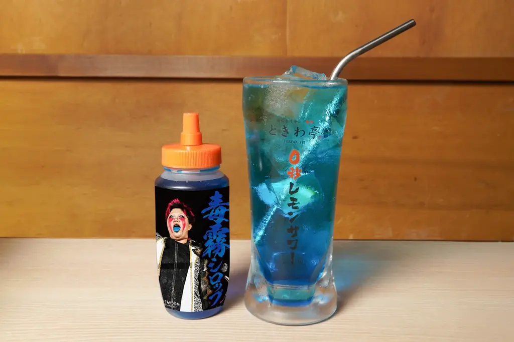 | 毒霧サワー(シロップ) | 329円 | 刀羅ナツコ選手をイメージした青いシロップ。レモンサワー等に追加して色を楽しむ仕様。相手に向けた行為は禁止。 |