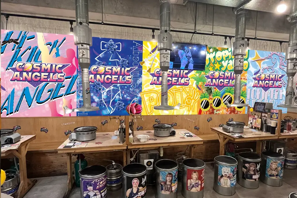 リニューアル後の店内は「スターダム」の世界観を反映し、複数のテーマブースやフォトスポットが設置されます。発表されたブースはFWCブース、Mi Vida Locaブース、COSMIC ANGELSブース、朱里画伯~さぶろうと仲間たち~ブースなどです。各ブースは選手のイメージやユニットカラーを再現し、写真撮影や鑑賞に適した演出が施されます。