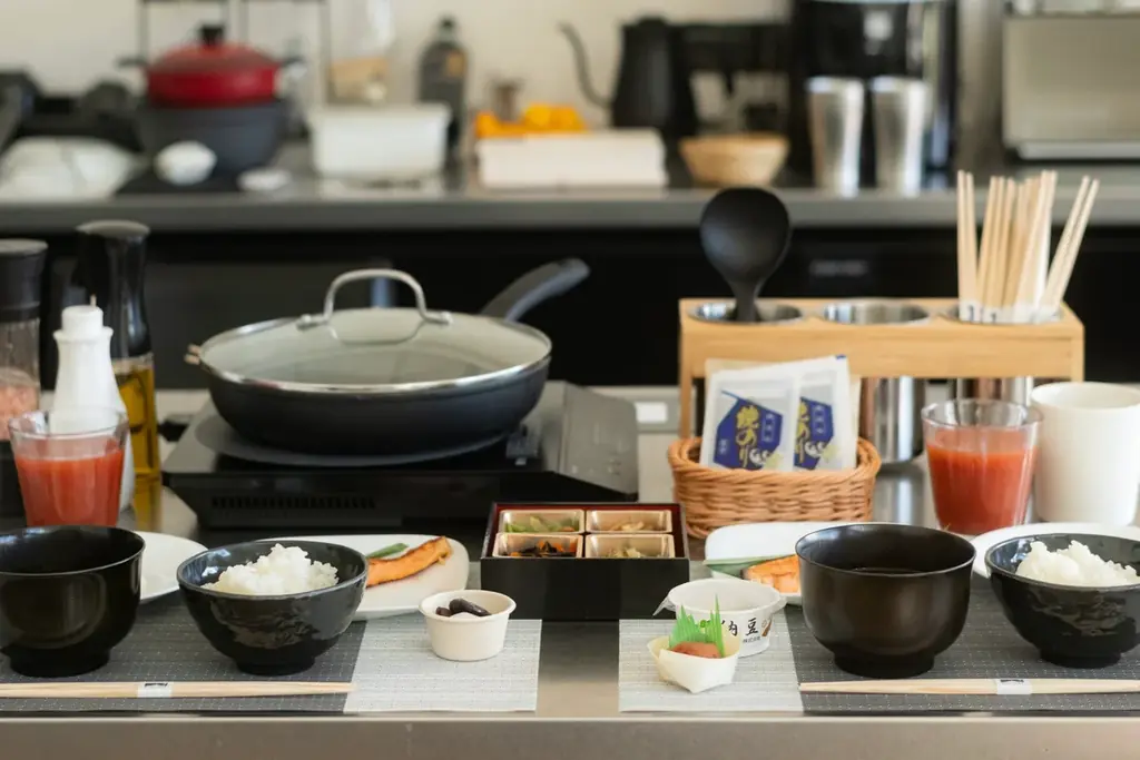 朝食は信州味噌の味噌汁、佐久産米のごはん、発酵食品を中心とした和朝食を基本に、希望に応じて信州産きのこを使った温かいスープが主役の洋朝食を選択可能です。いずれも身体への負担が少なく、滞在中に得た静けさや集中力を保つための構成です。