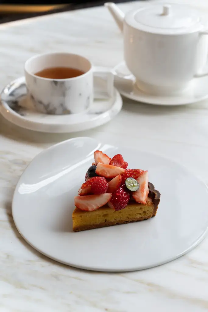 - メニューの特徴:フォンダンショコラのタルト、72%オーガニックチョコレート、レモンのコンフィ、ヘーゼルナッツのプラリネ、カカオパルプのアイス、ラズベリーソース