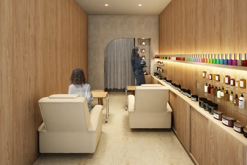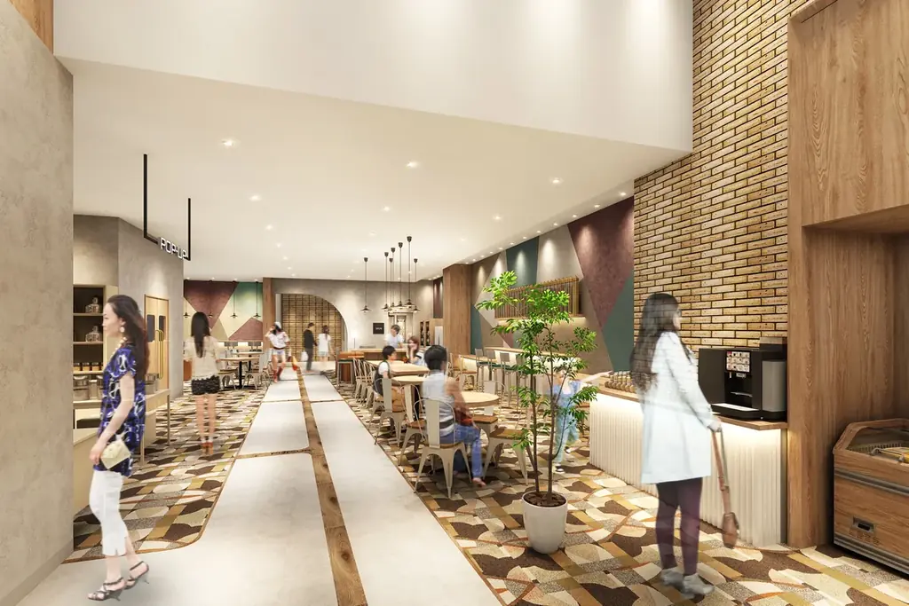 ラウンジは約50席を用意し、カウンター席(14席・全席にコンセント)やテーブル席、ソファ席を配置。軽食やコーヒーの販売に加え、有料サロン「ネイル&眼のリラクゼーションサロン アヴェク・トワ」を設置します。待ち時間の活用や隙間時間のデスクワーク、子どものスクール待機場所など多様な用途に対応するサードプレイスとして設計されています。