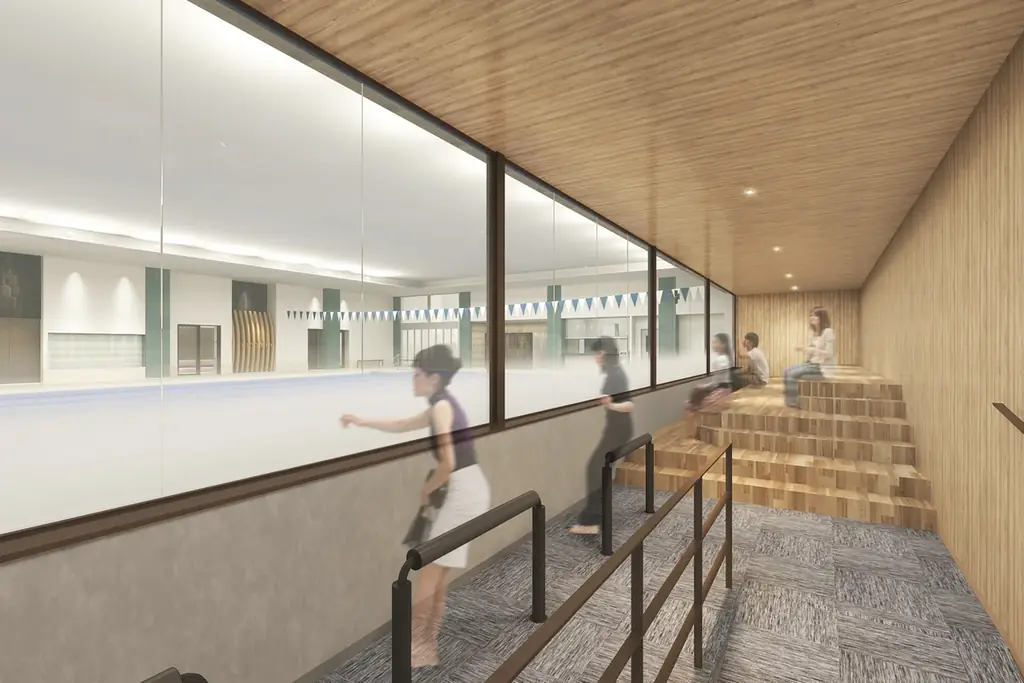 プールは25m×7レーンを備え、ベビーから成人までを対象としたスイミングスクールを展開します。人気のSUPヨガやアクアビクスなどのアクアプログラムも実施予定です。プール観覧スペース(ギャラリー)を設け、キッズスクール参加の保護者が近くで見守れる設計です。