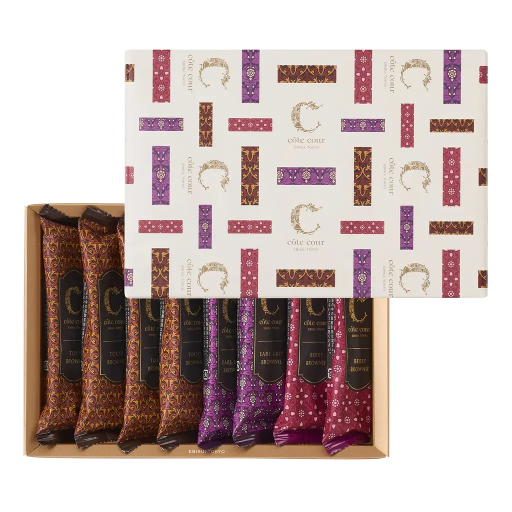 本詰合せは、コートクールの定番商品である『東京ブラウニー』と『アールグレイブラウニー』に、期間限定の『ベリーブラウニー』を加えた3種類のラインナップを個包装で詰め合わせた商品です。常温で持ち運びができる仕様のため、取引先への手土産や挨拶回りなどビジネスシーンでの利用も想定されています。