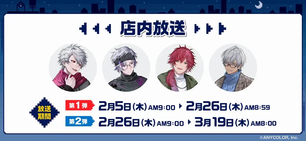 - 放送期間:第1弾 2/5 AM9:00 ~ 2/26 AM8:59/第2弾 2/26 AM9:00 ~ 3/19 AM8:00