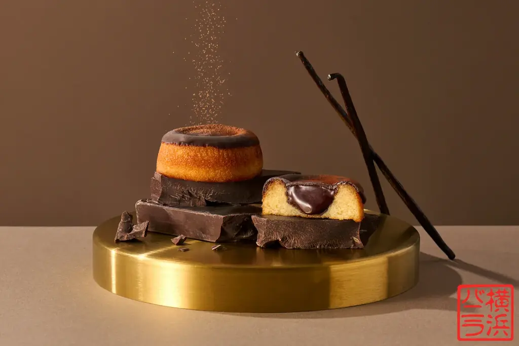 「塩バニラフィナンシェ ぱりとろショコラ」は、横浜バニラが追求する素材選定と製法の結晶です。商品はエンゼル型で焼き上げられ、中央にくぼみを持たせたフォルムが特徴です。内部はしっとり、外側はカリッとした食感に焼き上げられています。