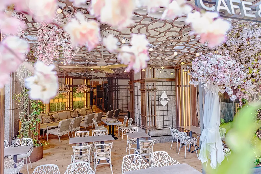 表参道欅並木に面するテラス席は、3月5日(木)~4月20日(月)の期間にアート桜で華やかに装飾されます。このSAKURAテラスは、表参道の通りを望みつつ桜の雰囲気を楽しむことができる空間となっており、屋外の空気感と視覚的な華やぎがティータイムに加わります。