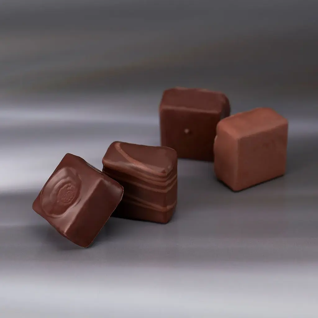 「リヨンの小さな石畳」。サクサクと軽やかで口どけの良い食感、ヘーゼルナッツの繊細な香り。価格:3,240円(1箱、100g)。<日本初登場> - ラック ショコラティエ — プラリネ アソート