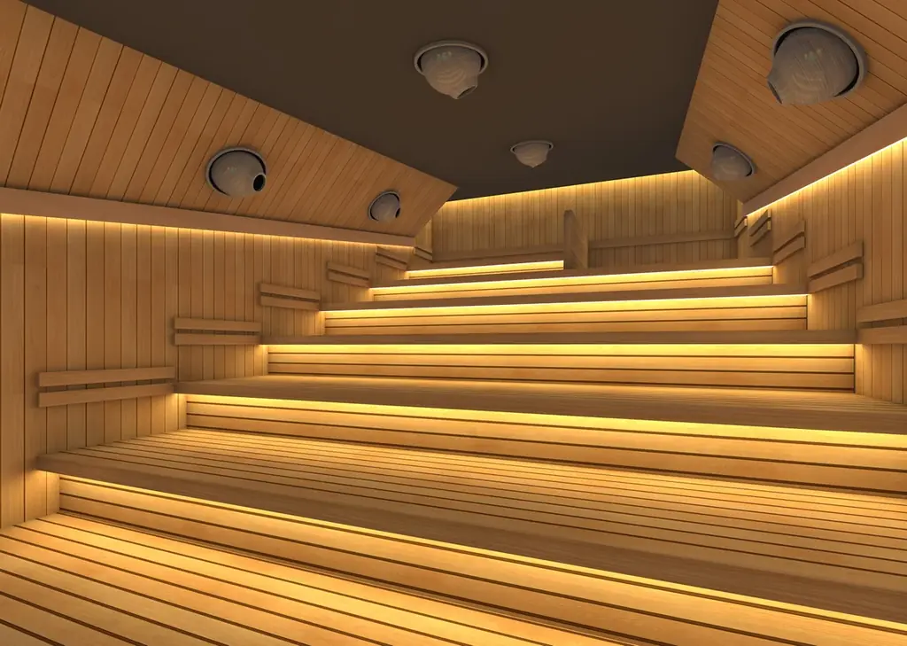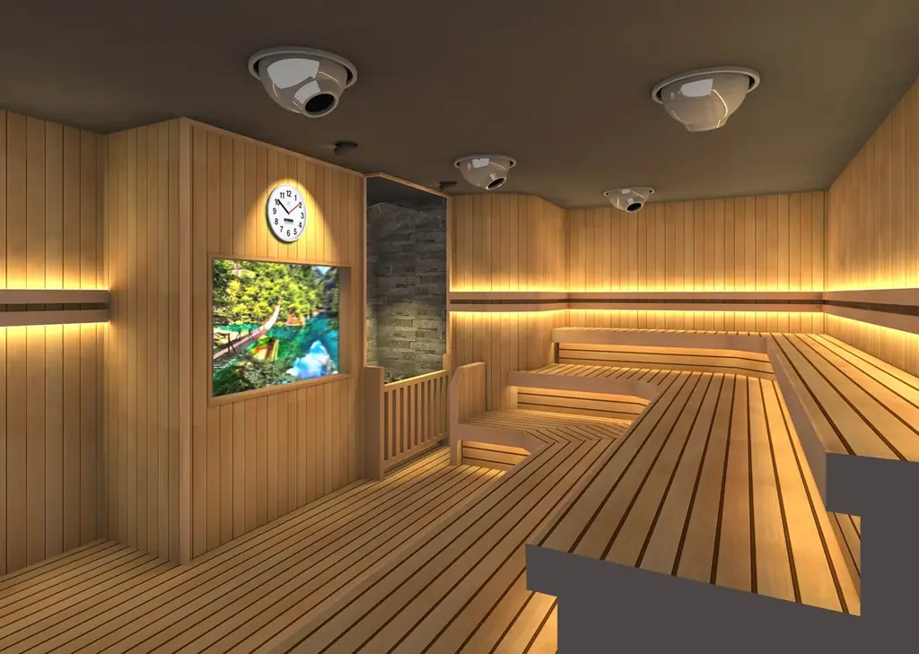 オート熱波はロウリュウ後に天井に設置されたブロア(送風装置)から風を送る機能で、蒸気の拡散と体感温度の変化をコントロールします。これらの自動化により、利用者は定期的なロウリュウ体験を得られるだけでなく、安全性や運用の安定性も向上します。