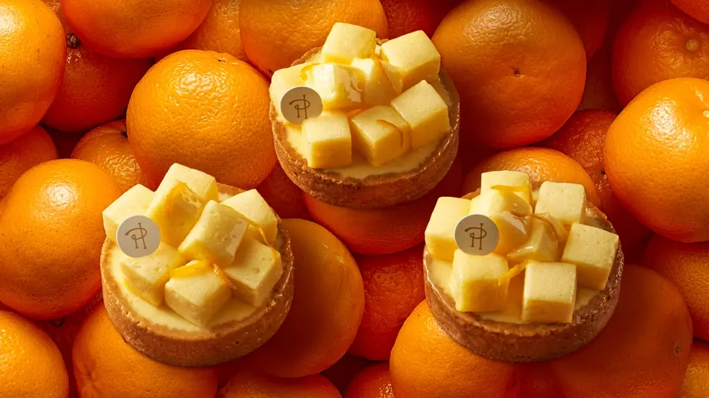 新作のタルト「タルト アンフィニマン マンダリン グルマンディーズ レゾネ」は、マンダリンオレンジのフルーティさと芳香を主軸にした設計です。マンダリンの酸味、芳香、ほろ苦さをクリーム、パートシュクレ(タルト生地)、メレンゲと組み合わせ、それぞれの質感が調和するように仕上げられています。