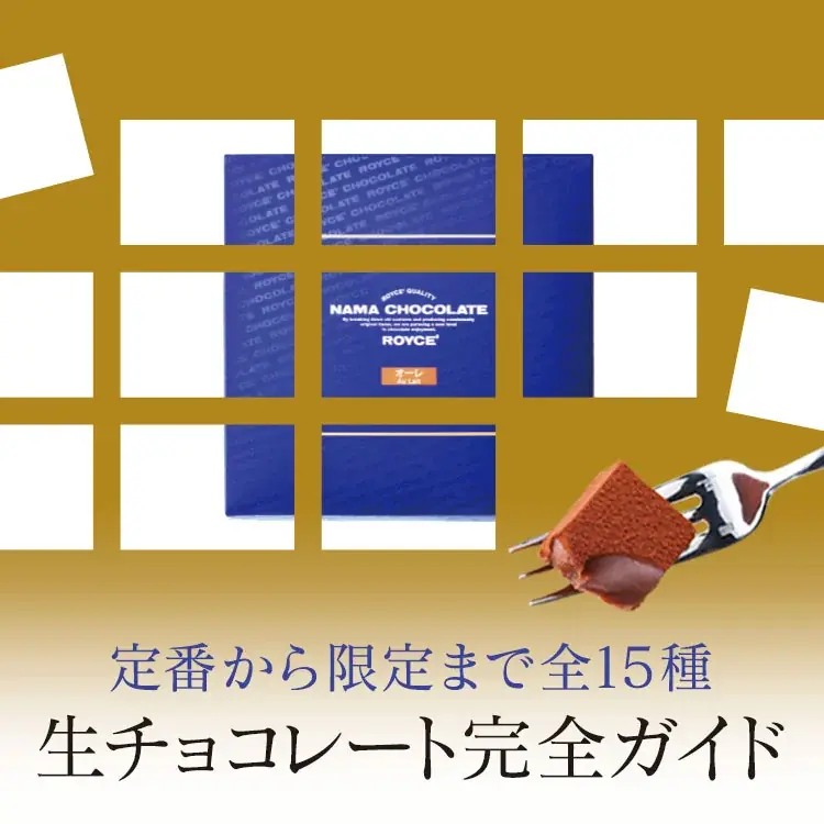 生チョコレートの特集ページは https://www.royce.com/contents/namachart で確認できます。オンラインショップではバレンタインに合わせた詰め合わせや、人気商品のポテトチップチョコレートなど幅広いラインナップが購入可能です。