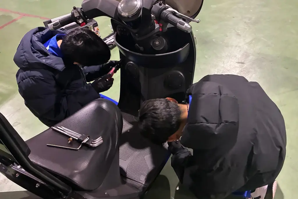 本職場体験では、車両を扱う企業ならではの実践的なプログラムが組まれました。生徒たちは実際に車両に触れ、内部構造を学ぶための分解体験を行い、ものづくりの現場で求められる安全性への配慮や構造理解を深めました。分解体験では3輪電動バイク「EVデリバリー」などが扱われ、普段目にすることの少ない内部構造に触れる機会が設けられました。