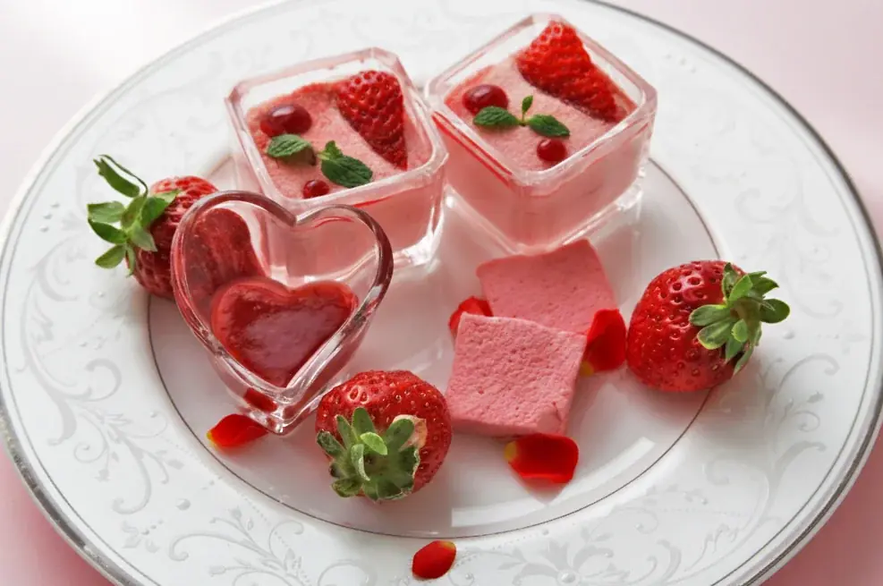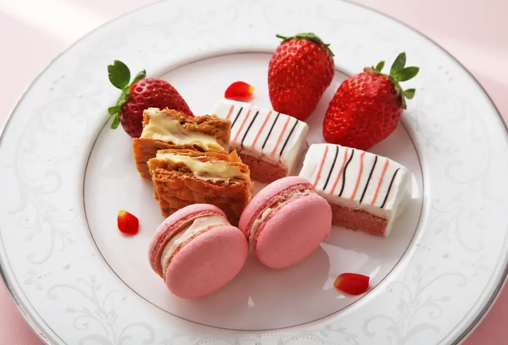 | 主なスイーツ | いちごシフォンケーキ、いちごミルフィーユ、いちごマカロン、タルトレットフレジェ、いちごのコーン、いちごショートケーキ、いちごティラミス、いちごボンボンショコラ、いちごギモーヴ、スコーン、いちごジャム、いちごアイスクリーム、フレッシュいちご |