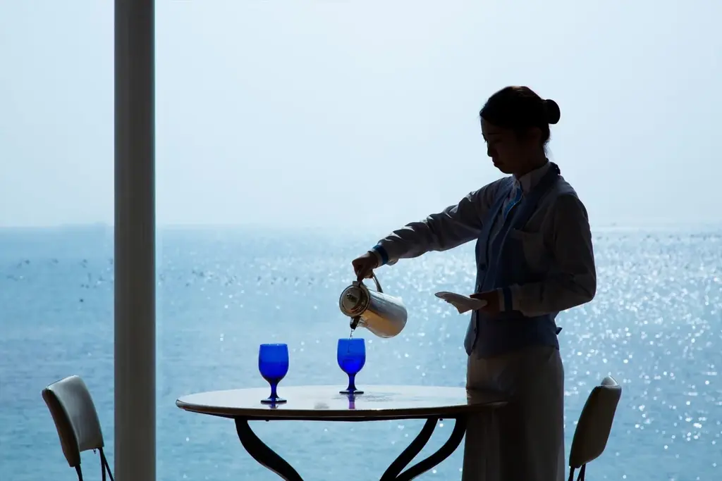 海を望むカフェで楽しむ苺のアフタヌーンティー