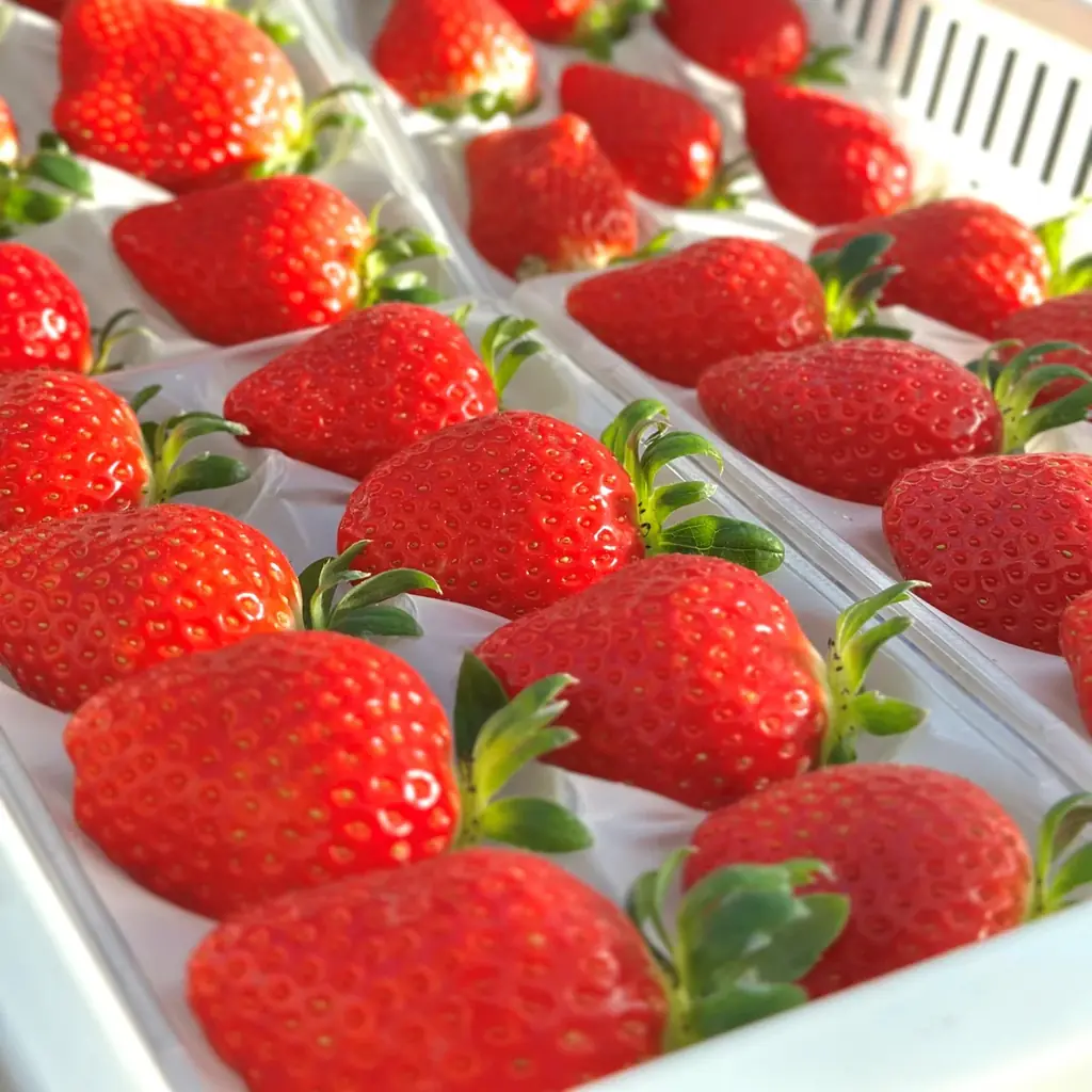 店頭では三ツ間氏がその日の朝に収穫したいちごを自ら選定して出荷します。地元での生産・流通だからこそ可能な朝採れの鮮度を売りにしており、毎日異なる品種が並ぶ可能性があります。