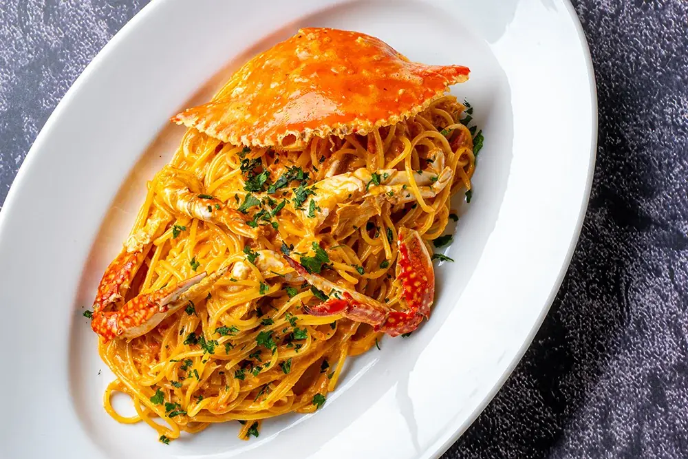 歴代人気No.1の渡り蟹トマトソースをベースに、北海道産マスカルポーネチーズを加えた濃厚なトマトクリームパスタです。蟹の旨みとチーズのコクが調和する贅沢な一皿として位置づけられています。