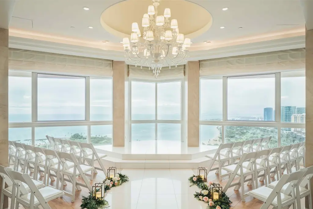 プリンス ワイキキのウェディング情報が刷新され、新たなウェディングページが公開されました。ヨットハーバーを一望する「ラニレア・チャペル」は地上107mの高さからのパノラマビューが特徴で、式場そのものが景色の一部となる設計です。