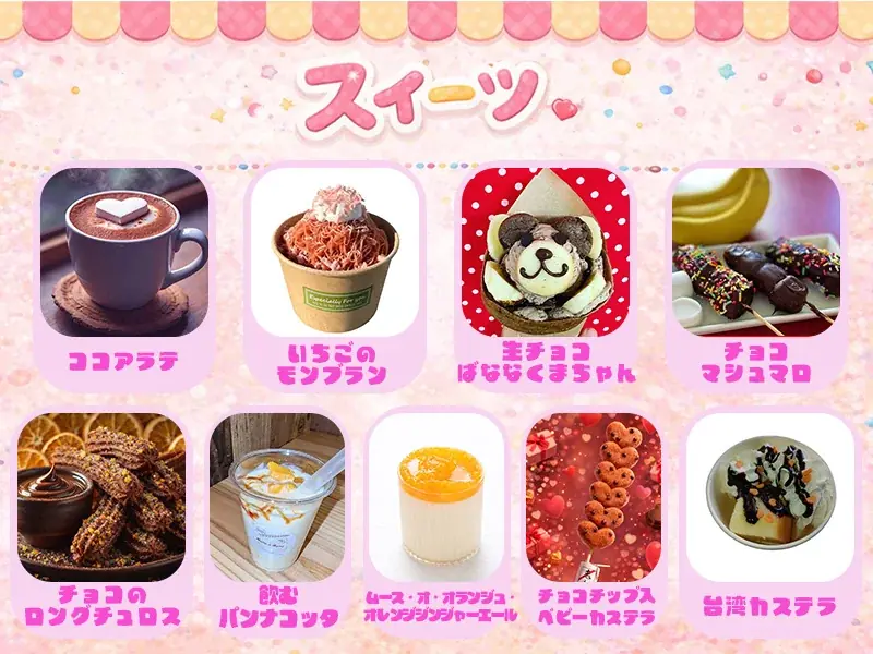 GIRLS DAYのスタジアムグルメは「スイーツ」を主役に据えたラインナップです。見た目にも配慮した商品が揃い、写真映えするメニューが中心になります。スイーツは試合観戦の合間の時間に気軽に楽しめるように販売されます。