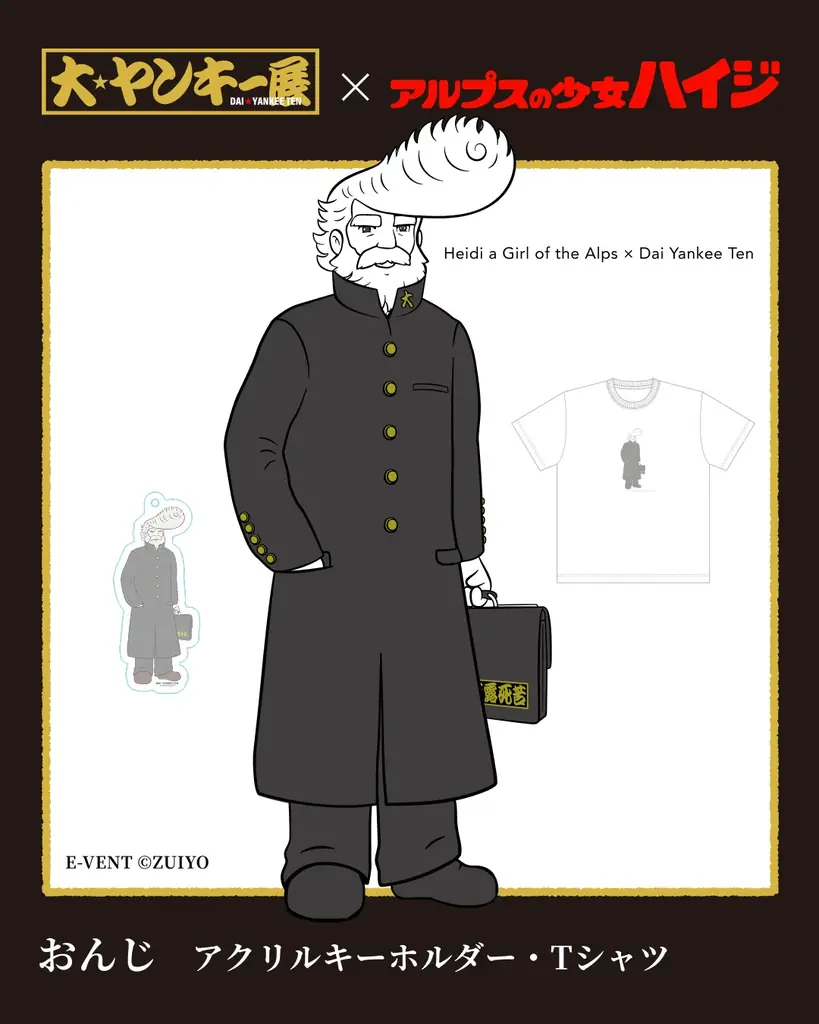 『アルプスの少女ハイジ』とのコラボでは、風紀委員としてヤンキーを取り締まる「ハイジ」や、伝説の番長スタイルになった「おんじ」などのイベント限定巨大展示が登場します。会場では“ヤンキーおんじ&風紀委員ハイジ”の会場限定フォトパネルが設置され、来場者は展示と一緒に記念撮影が可能です。今回のコラボレーションは既存イメージを遊び心ある解釈で再提示するもので、展示そのものがひとつの見どころとなっています。
