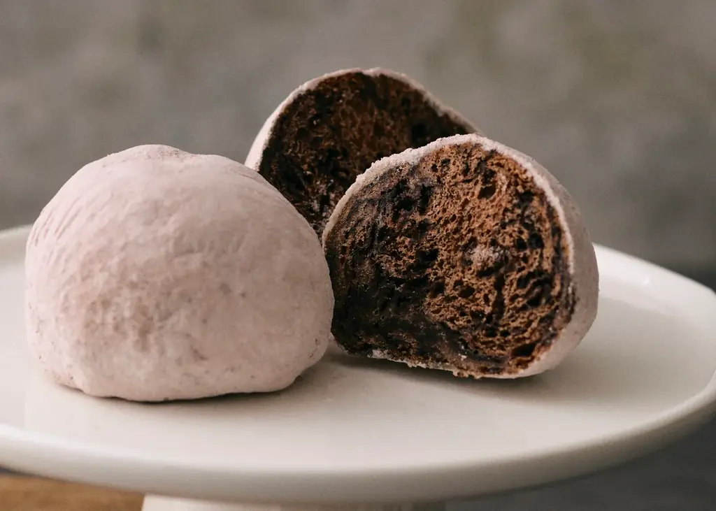 「米粉のチョコもちサンド」は、水種粉と米粉を用いた生地で、お餅のようなもっちり食感を再現した新感覚のチョコパンです。洋のチョコレートと和のもちを掛け合わせたコムンオリジナルの試みとなっています。