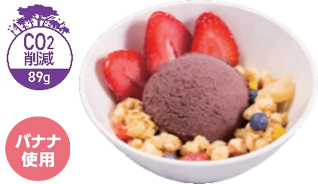 『ミニアサイーボウル~ショコラ~』で使用されているアサイーは、株式会社フルッタフルッタが供給する高濃度アサイーです。同社は2002年の創業以来「自然と共に生きる」を理念に掲げ、アグロフォレストリー(森をつくる農業)による原料調達を進めています。