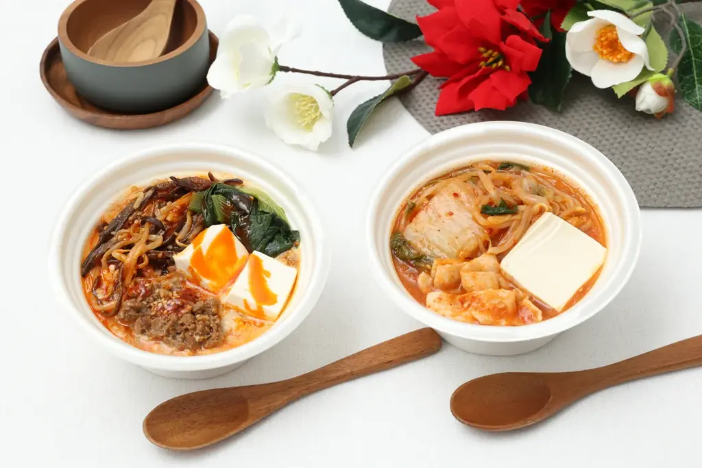 | 特長 | キムチチゲはキムチの酸味・辛みと豚肉・野菜の旨味を活かしたコク深い味わい。豆乳担々は豆乳のまろやかさと胡麻の香ばしさ、肉みそのコクで仕上げたまろやかな辛味。 |