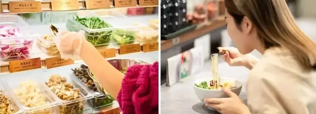 七宝麻辣湯の大きな特徴はカスタマイズの自由度です。プレスリリースによれば、50種類以上のトッピング、5種類の麺、6種類のスープ、辛さは0〜10辛まで選択可能で、組み合わせにより多様な一杯が作れるように設計されています。
