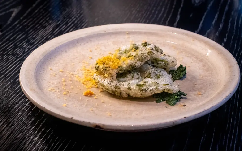| 自然薯のゼッポリーニ、モロヘイヤ、カラスミ | 1,500円 | ささき農園の自然薯、モロヘイヤ、カラスミ |