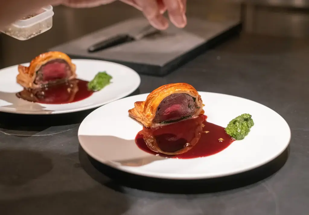 メニューの中には「自然薯のゼッポリーニ、モロヘイヤ、カラスミ」「クスクスブイヤベース」「蝦夷鹿のパイ包み」「苺のパブロバ」など、佐賀県内の生産者が育てた食材を核に据えた一皿が含まれます。中村シェフは佐賀の風土や生産背景を踏まえて調理し、ここでしか味わえない組み合わせを目指しています。