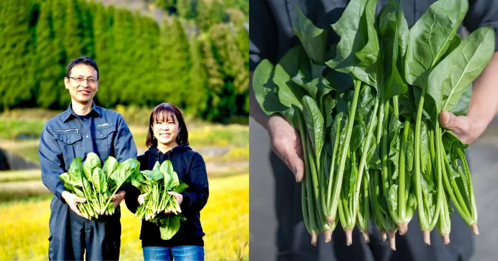 https://www.tabechoku.com/producers/20852 - とんぼ農園(神埼市):ほうれん草。標高350mの山の畑で土作りを重視し育成。経験と研究を積んだ品質。