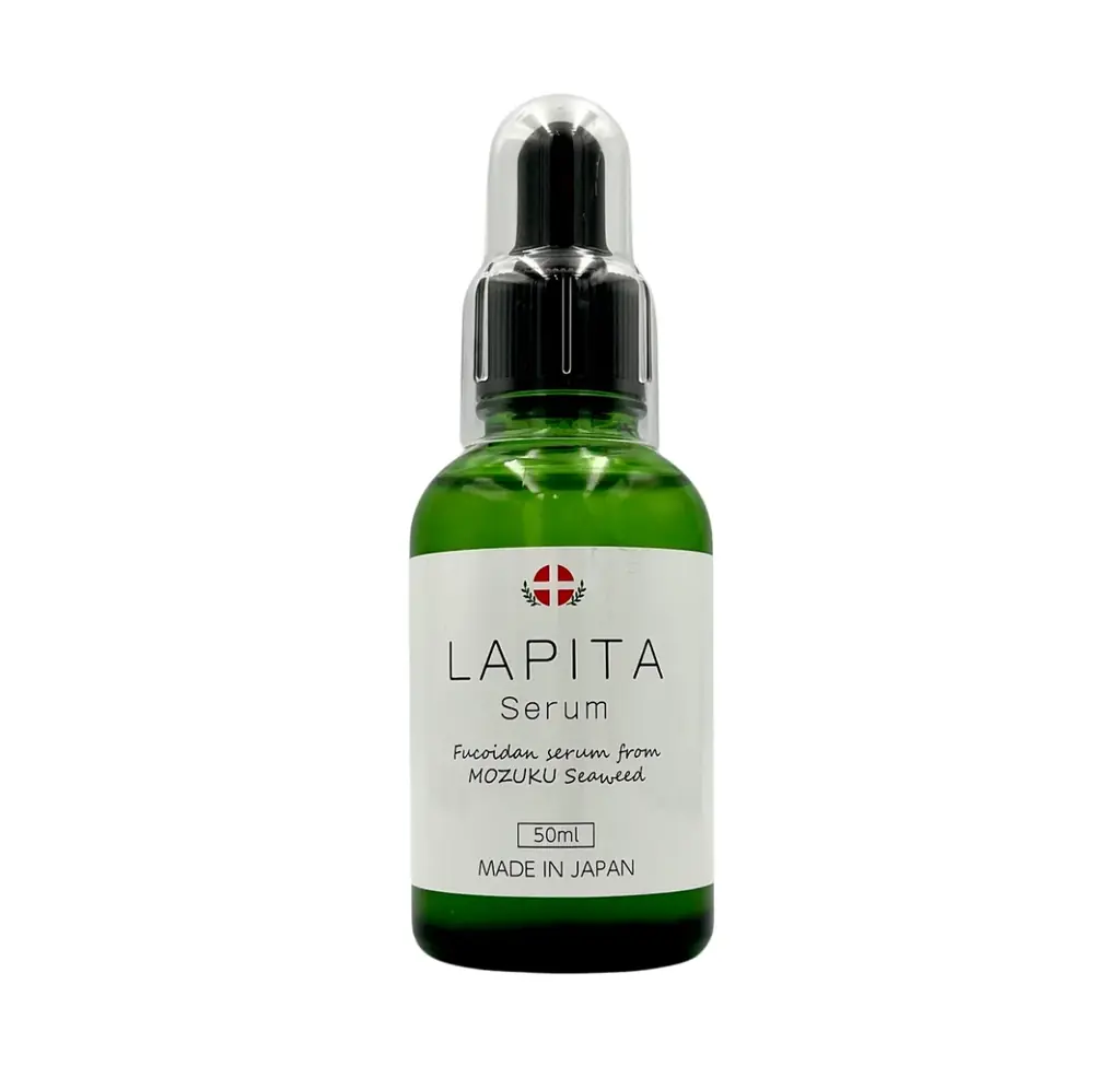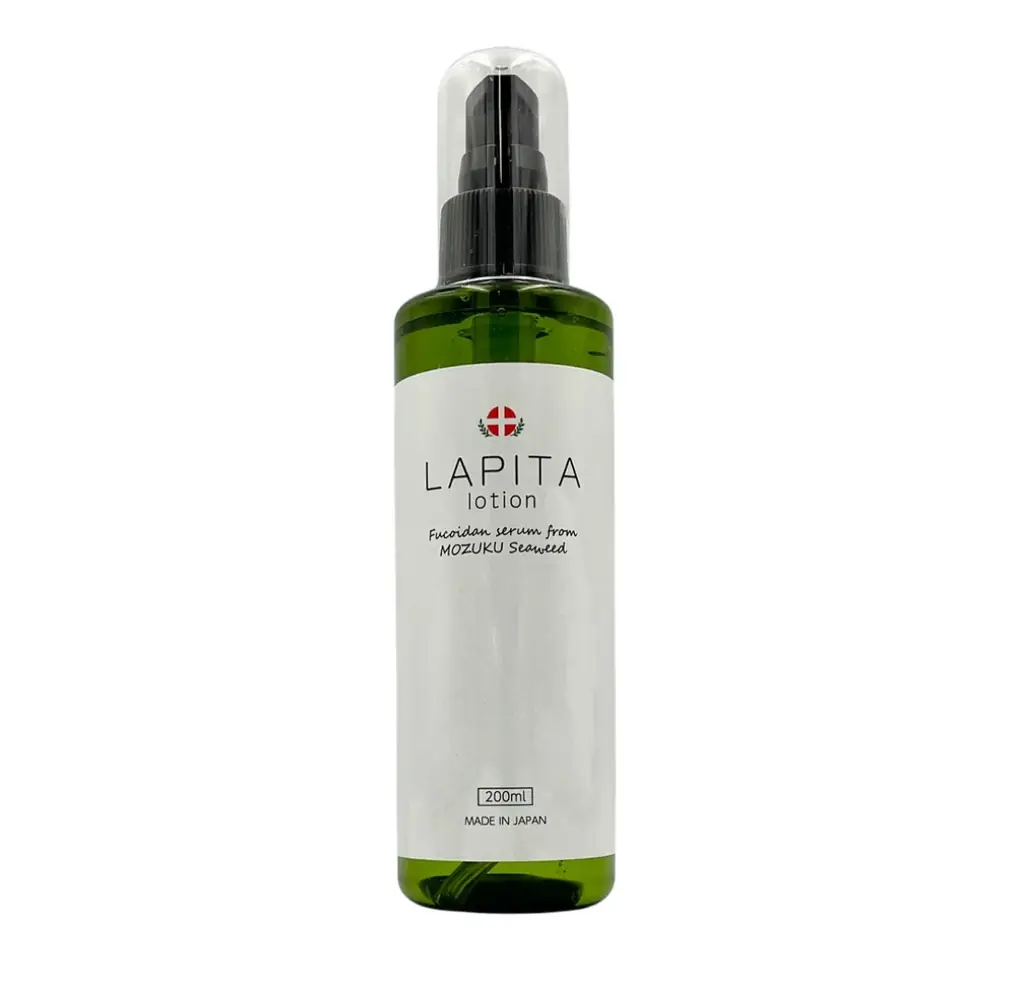 「LAPITA 3点セットBOX」は保湿ローション、美容セラム、ミルクエッセンス(乳液)の3点で構成され、うるおい補給から肌バリア強化までをトータルにサポートする設計です。各製品にはトンガ王国産モズク由来フコイダンが配合されている点を共通の特徴としています。