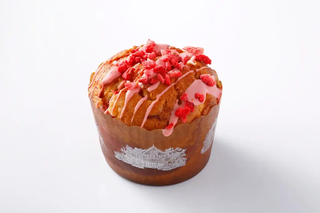 『あまおうマフィン』は、テイクアウト料金で¥724。みずみずしく濃厚なあまおうジャムを練り込み、丁寧に焼き上げたマフィンで、しっとりとした食感とあまおうの華やかな香りが特徴です。