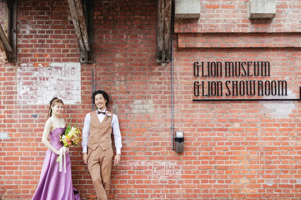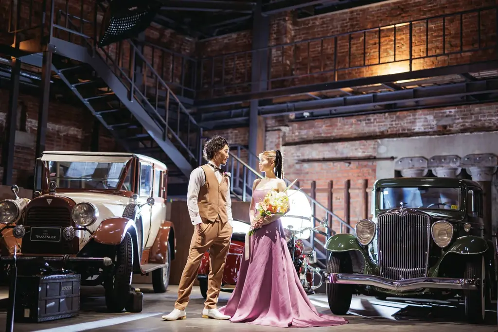 アカレンガウエディングは、約3,000坪の赤レンガ倉庫をリモデルしたウエディングステージです。敷地内にはクラシックカー博物館のGLION MUSEUMが併設され、外国映画のような壮大なロケーションやヨーロッパとアメリカの趣を兼ね備えた空間が特徴です。