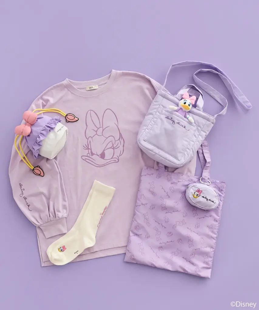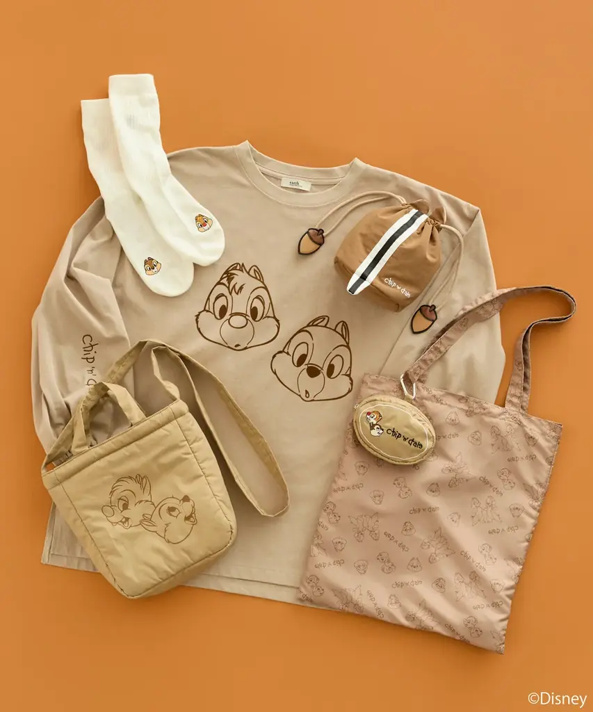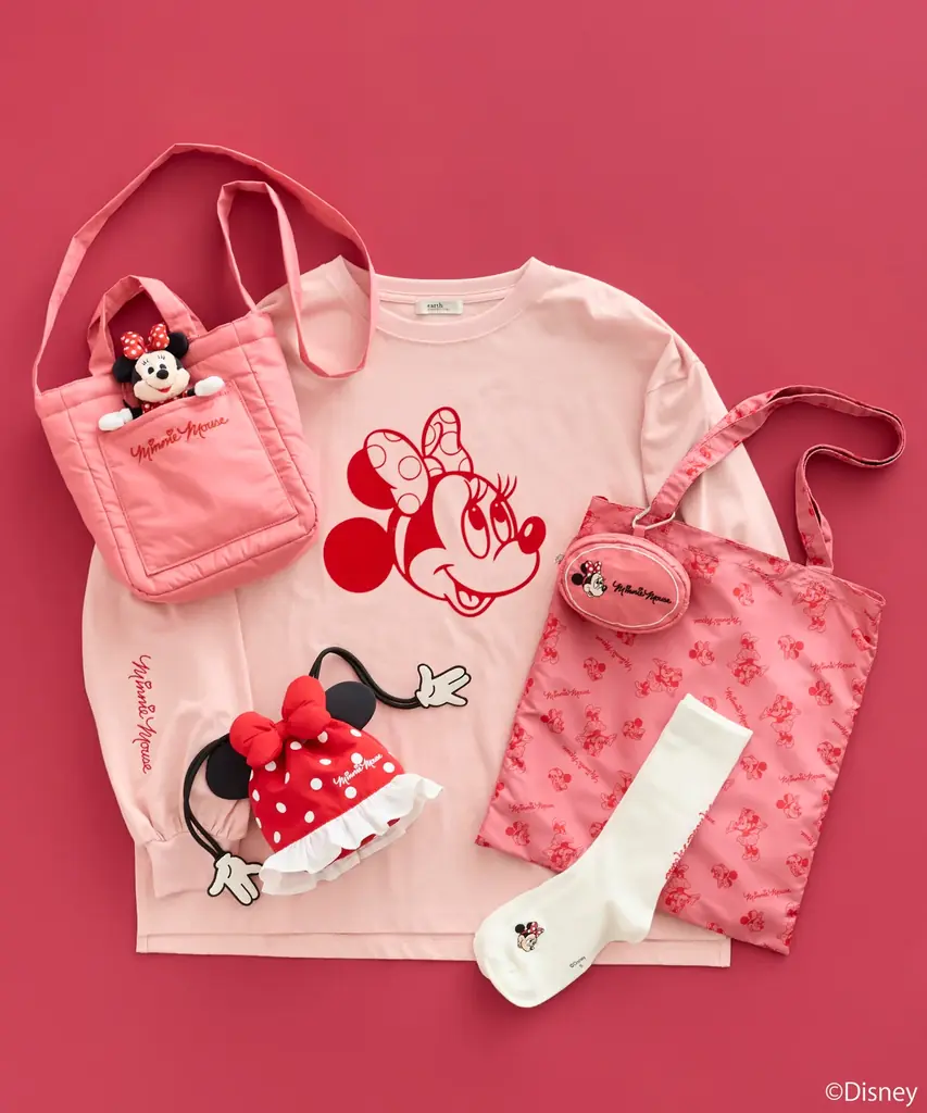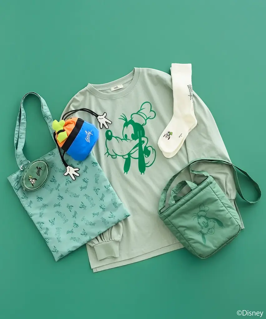 本コレクションは合計5型の展開で、具体的にはトップス1型、バッグ2型、ポーチ1型、ソックス1型のラインナップです。いずれも普段使いしやすいデザインに重点を置きつつ、ディズニーキャラクターの魅力をさりげなく取り入れています。